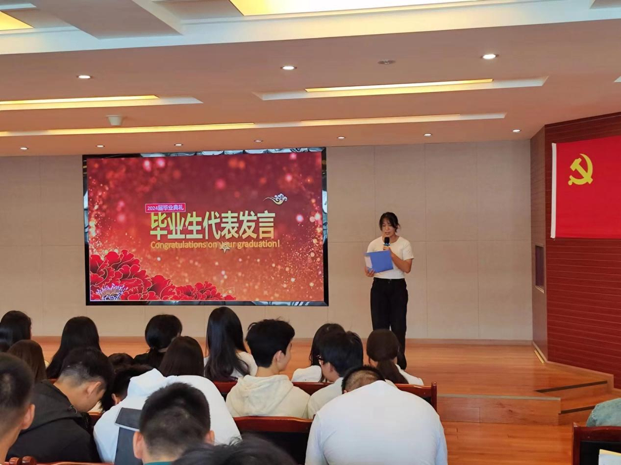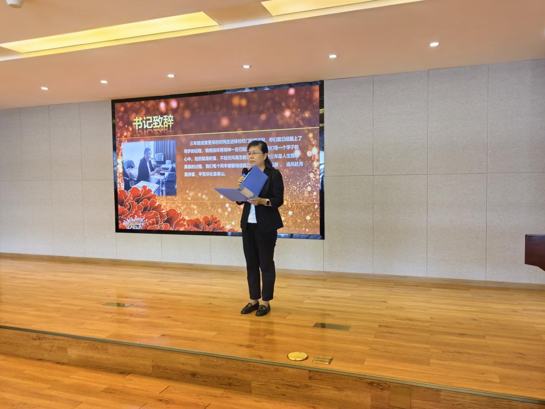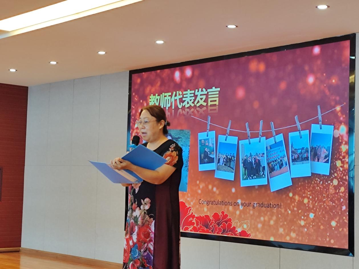 教师代表杨咏梅老师回顾了三年以来与学生们相处的点点滴滴,对学生们一路走来的成长表示由衷的欣慰,并对毕业生的未来表达了期许。