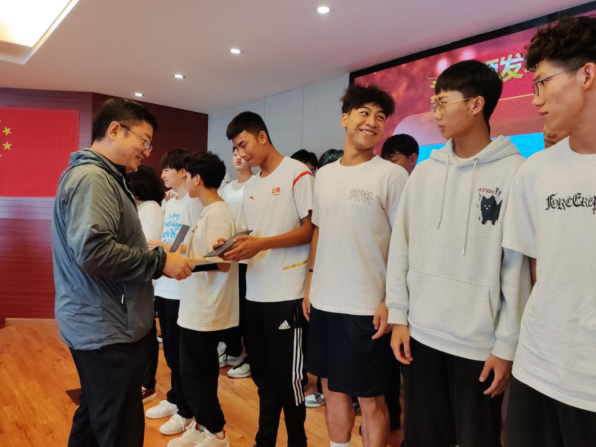 三年的学习,离不开教师的悉心教导、教练员的耐心指引以及学校各部门职工的无私付出,毕业生代表手捧献花向到场的老师、教练、职工、教官、宿管及保安人员表达了深深的谢意,感谢他们三年来为学生们安心学习训练保驾护航。